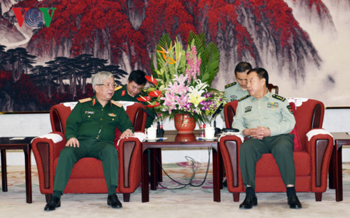 陪同陈大光与夫人访华并出席“一带一路”国际合作高峰论坛期间,越共中央军委常委会委员、国防部副部长阮志咏上将12日会见中共中央政治局委员、中央军委副主席范长龙上将。