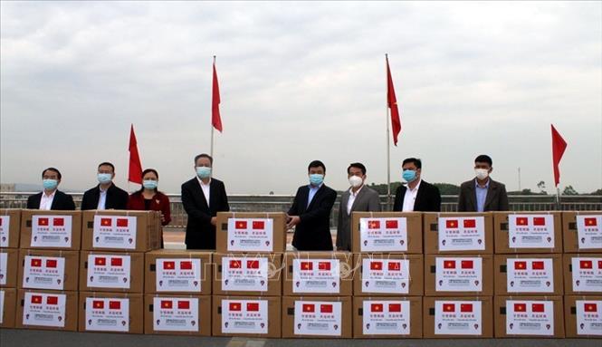 (VOVWORLD) -越南广宁省代表8日在芒街市中越北仑河二桥接收了由中国广西壮族自治区和东兴市赠送的防疫物质。