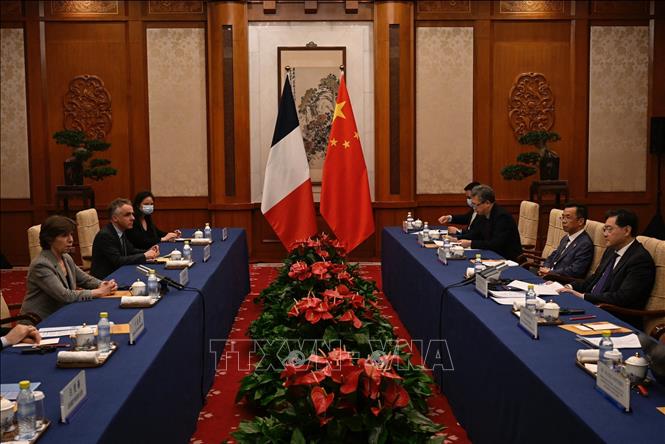 法国总统马克龙于4月5日至7日对中国进行访问期间,中国外长秦刚与法国外长卡特琳·科隆纳(Catherine Colonna)5日在北京举行会谈。