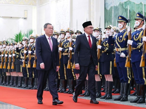 中国国务院总理李强和马来西亚总理安瓦尔 |