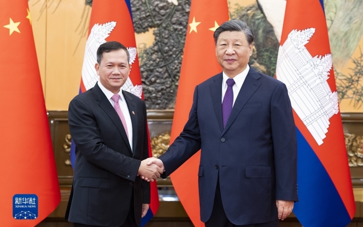 据本台驻中国记者报道,中国国家主席习近平 15日会见柬埔寨首相洪玛奈(Hun Manet),此间,中国国务院总理李强在北京与洪玛奈举行会谈。双方强调重视并决心进一步巩固和深化双边关系。