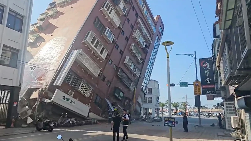 地震导致台湾台北市多地停电;与此同时,震中附近的花莲市也有不少人被困在倒塌的建筑下。