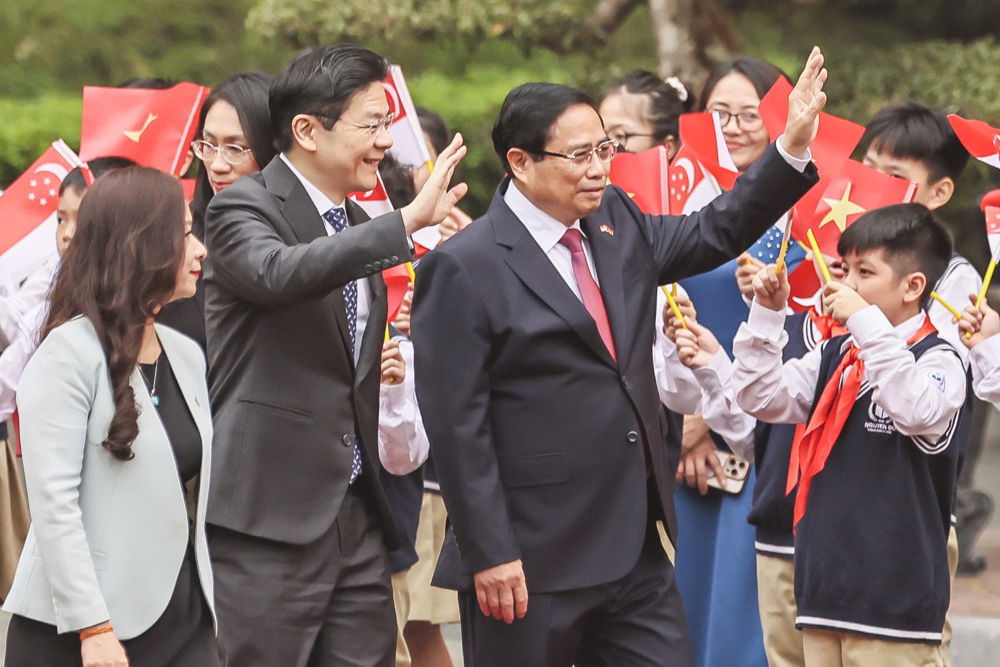 组图:范明政主持仪式,欢迎新加坡总理正式访问越南