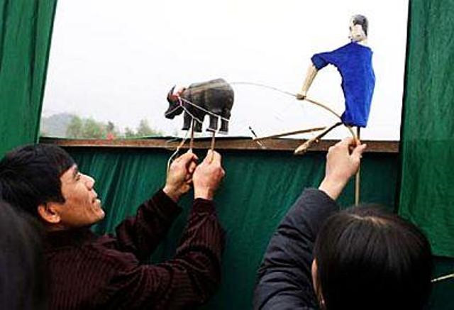 沈若村浅木偶要靠小竹根对木偶的身体、头部、手脚进行操纵。男人负责操纵木偶,而女人将代木偶唱歌和说话。有的人甚至要同时承担三四个角色。