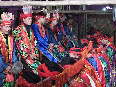“这项仪式标志着你真正成为了缝瑶族社会的一员。这张网类似蜘蛛网,下面有三四个人托着,还垫着被子。男子从祭坛上掉下来后,将送回家吃喝。如果当上巫师,那么举行过僧礼后就可以从事这项工作,并可以为其他人举办过僧礼。”