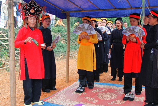 民间文化研究院的阮氏安博士就此解释说:“二娘节类似于下田节,不过是萨满教的形式。萨满教形式即附体。仙女们的灵魂附到这些姑娘身上,她们唱着歌,然后飞到天上,见到月亮妈妈,向她索取种子、树苗,祈福、祈寿、祈缘等等,这一切在歌曲里都有体现。这项仪式,全村人都参加。”