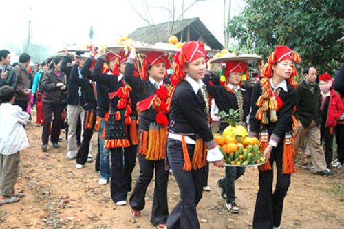 赫蒙族是在每年农历11月底收割后过年的,比京族春节早一个月。与其他民族一样,赫蒙族传统新年也极具特色,各种美味佳肴十分丰盛。