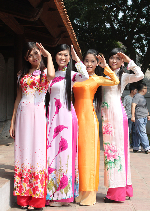 说到越族妇女,不得不提长衫(中文音译为奥黛)。无论身在何处,京族妇女都对传统长衫引以为豪。长衫剪裁非常合身、苗条,带高立领。前后衣襟从脖子一直到脚踝,下半身配上一条裤脚触地的喇叭筒长裤。