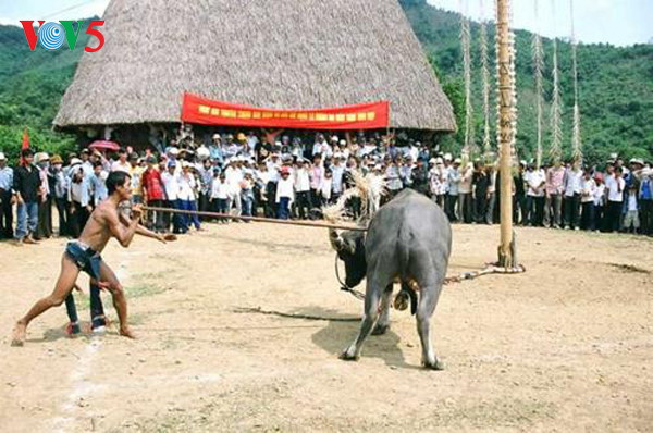 当村长老把铜钲和白色土锦布放在献祭动物——水牛身上,用做枕头并披在它身上,以送它上天后,仪式将会结束。随后,人们给各个村分水牛肉,共同欢度节日。