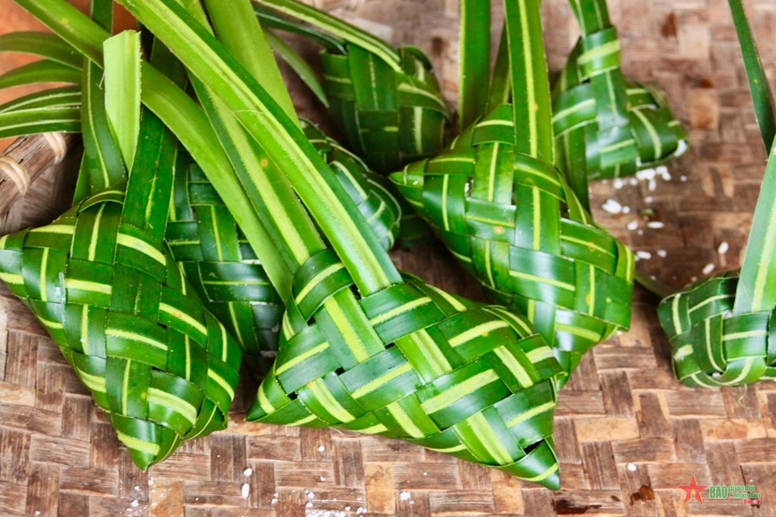 为了做鸪鸟饼,高兰人要入森林或上高山寻找野生菠萝叶,这是高兰人最喜欢的叶子,因为他们相信这种叶子可以增添鸪鸟饼的味道。 菠萝叶洗净和晾干后,剥去刺,劈开坚硬的叶脉使其变软,然后由奶奶和妈妈巧妙地编成美丽的空心鸪鸟形状。 精选糯米洗净和沥干后,加少许盐调味,然后塞入饼皮中。