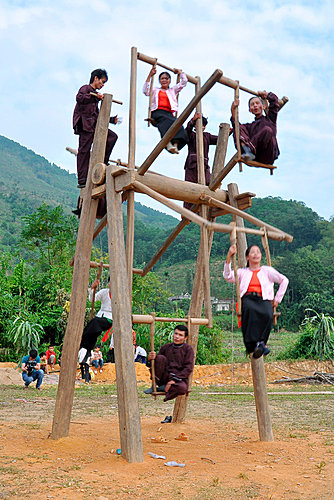 芒族素有种田传统,水稻为其主要农作物。走访芒族村寨,我们将看到背靠大山,面向一望无际绿色稻田的高脚屋,周围是一年四季开花结果的树木。