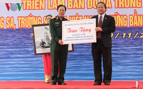 越南通讯传媒部副部长张明俊在开幕式上致辞时表示,展览上展示的从国内和世界各国收集的资料,是证明越南对黄沙和长沙两座群岛拥有主权的历史和法理证据的一部分。