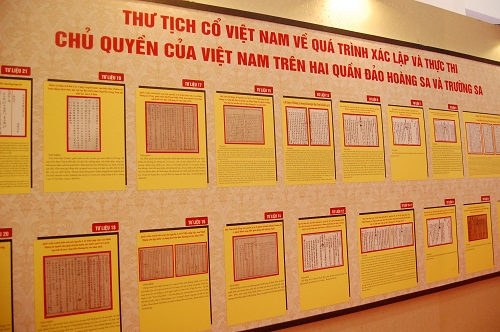 展览展示的地图和资料是证明越南对东海黄沙长沙两座群岛主权的历史和法理依据。资料显示,越南自过去的封建时期到现在的社会主义时期已经发现、确立、行使并维护对我国领土上的黄沙、长沙两座群岛及其他岛屿的国家主权。