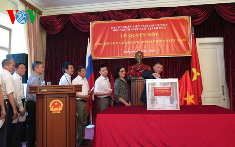 (VOVworld)- 旅居俄罗斯越南人代表6月24日前往越南外交部海外越南人国家委员会转交7万美元和3亿越盾款项,以捐给越南海上执法力量。