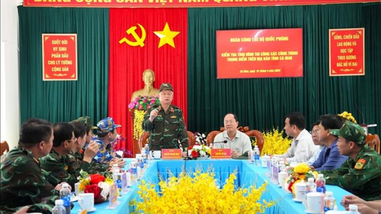 [VOVWORLD] - 4月1日,以国防部副部长阮光玉上将为首的工作代表团前往金瓯省薯岛,视察各重点工程项目实施情况。