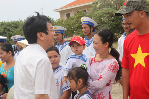上述代表团在此访中探望了大长沙岛(Truong Sa Lon)、渔船甲(Thuyen Chai A)和渔船乙礁(Thuyen Chai B)、东长沙岛(Truong Sa Dong)、安邦岛(An Bang)、西礁(Da Tay A)、奴来礁(Nui Le A)、拉持礁(Da Lat)、速珊岛(Toc Tan)等岛屿,并为在DK1海上高脚屋牺牲的烈士举行悼念仪式。(完)