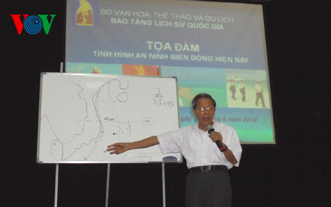 (VOVworld)- 越南国家历史博物馆6月20日举行“当前的东海形势”座谈会。公安部战略科学院前院长黎文刚少将担任主要演讲者。
