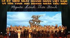 (VOVworld)- 适值越南企业日,越南工商会十月十一日举行纪念仪式,并向获得“和平时期的战士”称号的百强企业领导人授予雍圣杯。