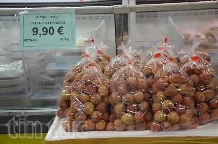 (VOVworld)- 越南北江省陆岸县向法国出口的首两批1200公斤荔枝在专门从事越法贸易的清平青春进出口公司(Thanhbinh Jeune)的4家连锁超市上市。销售十分红火。