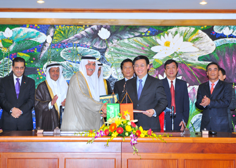 (VOVworld)- 越南财政部长王庭惠9日在河内与沙特阿拉伯财政大臣兼沙特阿拉伯发展基金会主席易卜拉欣·阿萨夫签署“广治省石金-贤和公路”和“富安省春福-富海公路”两个项目的贷款协定,总额3100万美元。