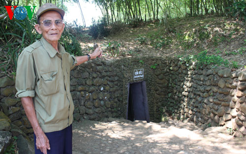 黎春和说 Hoa: “ 我父亲曾讲过战争时期开凿地道的故事,以及测量和计算方式。他说,地道里面还开有通风孔。为避免敌军发现,要在地上开交通沟,并种上竹子和盖上树叶,若在地下煮饭,炊烟就像霜雾,敌军也不会发现。1999年,我才首次参观地道。当时的感觉很难说出来。光听父亲讲,怎么也想象不出来。走进地道后,我有一个疑问就是怎么把一段段地道连接在一块。听父亲讲,地道是各段分别开凿并连接的,而不是从一个头做到尾,那么怎么把不同的段这么精准地连接呢 ”。