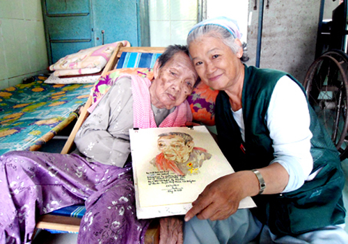 谈到越南英雄母亲范氏清,画家邓爱越就会想起范妈妈的每一个细节,从遭遇、性情到照顾范妈妈的人。那是因为,一般画速写只需15分钟构图,两个小时画像,但画家邓爱越在画前和绘画过程中会用很多时间与英雄母亲们聊天,有时候她还同她们一起吃饭,睡午觉,希望更了解她们。
