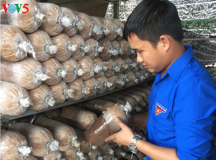 裴明胜的蘑菇生产模式不仅带来高经济效益,而且还为10名当地劳动者提供经常性工作,每名劳动者的月均收入为400至600万越盾。