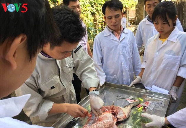 阮文明说:“我每堂课举一个例子,在真实的农场里发生的具体病例,我给学生仔细分析这种疾病的症状、预防和减轻损失的措施等。然后我才讲授课本内容,确保学生们能掌握基本知识和了解有关问题。我想在教育行业没什么能比得上实践教学,它能帮助学生长期、快速记忆。”