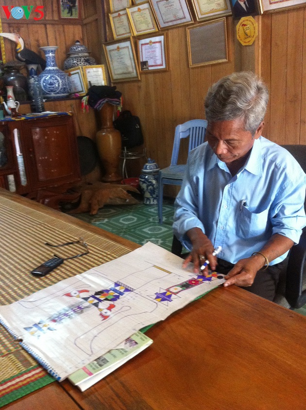 他在图纸上仔细地设计幡竿的每个细节,还附上图文说明。他对每个细节都进行了仔细研究,以保留戈都族同胞传统幡竿的灵魂。