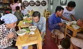 为了让大家知道这项活动,他主动请在路上遇到的劳动者每个月的第一个星期五到他的顺化牛肉米线店来吃。