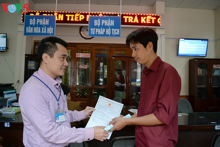 广宁省汪秘市光中坊居民阮光河一家刚迎来第一个女儿,要到坊人民委员会办理出生证。当天下午3点去领出生证时,他还另外收到一份特殊的礼物:由坊人民委员会副主席亲手送给他的贺卡。卡上系着一条红线,上面写着:“祝全家、祝宝宝快乐、健康、幸福”。此外,还附有留言,提醒婴儿照顾、饮食、疫苗等有关注意事项,让首次当父亲的阮光河了解了更多知识。