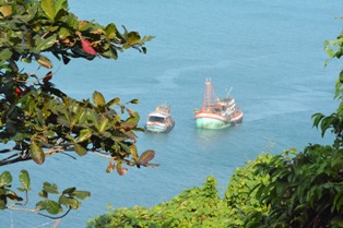 在岛上生活了20多年的陈文饶正一边埋头修他的旧渔船,一边向我们讲述他家的生活。上岛初期,他全家人到山上种水果。他家种了很多树,如波罗密、芒果,但经济效益不高,因为产品没有销路。