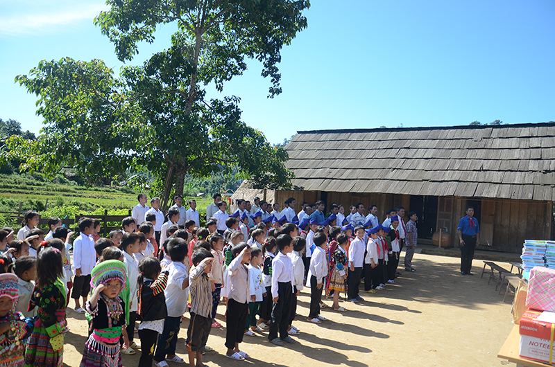 他说 :“从小学一年级教起,因此,由于我懂得民族语,所以能教得比较多,有时候讲越语孩子们听不懂。最难的是教学生们说越语、练唱、读字和写字。他们什么也不懂。衣服褴褛,手脚也不会洗。到学校后,老师要教他们如何穿衣服、洗手洗脚。第一天上学就像在家里一样自由,玩耍也像在家里一样,不知道什么是学习”。