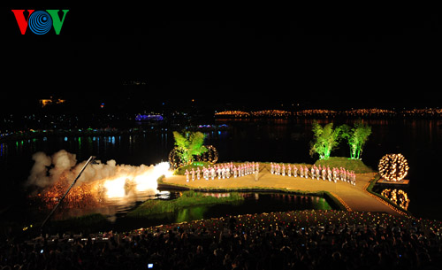 (VOVworld)-为期九天的2014年顺化艺术节闭幕式4月20日晚在顺化市嘉汇桥上举行。期间举行了多项精彩的文化艺术活动。