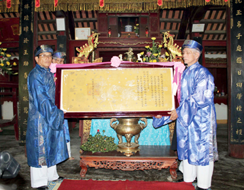 (VOVworld)-成天顺化省向金龙、良惯一和云阳一三村赠送阮朝时期册封原件的仪式4月15日在顺化市综合图书馆举行。
