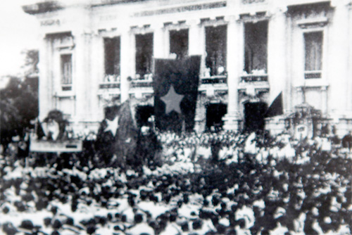67年前,当发动总起义的命令发布后,河内成为最早执行的地方。1945年8月17日下午,河内大剧院广场上,一面巨幅金星红旗从剧院阳台上垂挂下来。一场由职工总会组织的支持陈仲金政府的大型集会在这里举行,振奋了无数群众的心。音乐家文高早在1944年底创作的歌曲《进军歌》之前已在各个战区和河内从事秘密活动的革命战士中传开,如今公开唱响。1945年8月19日那天,更是响彻河内的大街小巷。音乐家丁需的《一起参加红兵》也不例外。歌中唱道:“一起参加红兵,齐心向前冲,不让敌军逃,我们不怕牺牲”。这首歌让人仿佛回到了1930年代义静苏维埃运动的峥嵘岁月。正在我台工作的音乐家青松说:“在音乐家丁需的这首歌问世后,涌现了一大批音乐家和音乐作品,深受革命思想影响,为革命,而首先是八月革命服务。其中包括:杜润的《游击歌》、刘友福的《歌颂青年》、潘黄鸟的《卫国军团》等,到1945年又有阮廷诗的《河内人》、1946年辉游的《回到河内》。上述作品反映的是革命思想,表明新思想融入了新歌中,鼓舞人们一起干革命,夺取政权和独立自由。”