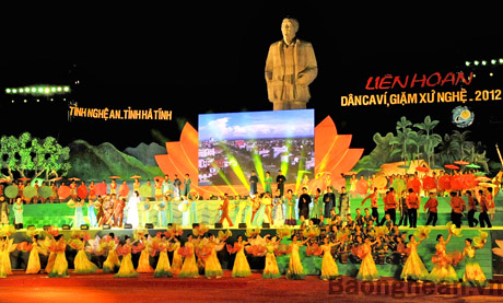 | 根据义安民歌改变的歌曲《河静人的心曲》。演唱者:越南人民艺术家秋贤 |