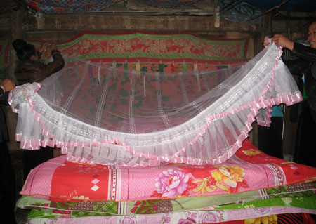 卢氏圆的女儿明年要嫁人,因此她和女儿从现在就开始纺织被褥了。她告诉记者:“数量嘛,想做多少就做多少,没有具体的规定。富人家做20床,一般的也得做10床。什么都得带,包括被褥、锅碗和鸡牛。”