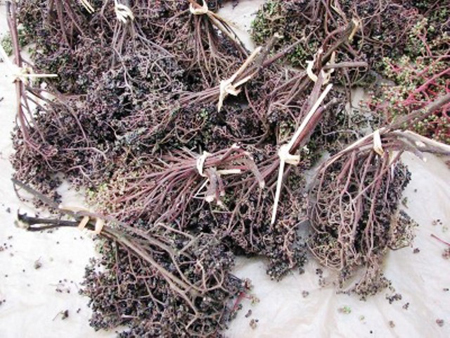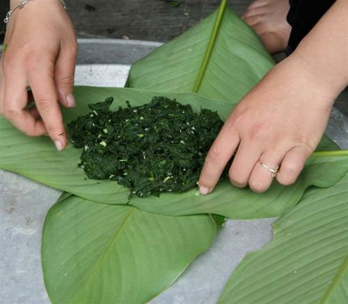 溪苔烧烤是奠边、山罗等省特有的美食。据卢氏良介绍,溪苔烧烤的做法很讲究,能体现黑泰妇女的灵巧和能干。卢氏良说:“在溪边生长的苔藓捡回来后要使劲摔,把小石头全部弄出来,然后洗干净,拧干,用青蒜、香菜、野胡椒、食盐及其他调料腌制,还要用香蕉叶包裹并在木炭上烤。这里人人都会做溪苔烧烤。如果调料不够,肯定不好吃。这些调料我们家常备着。如果是自己种的香菜,那味道会更好。除了烧烤外,还可以晒干做鸡汤。”