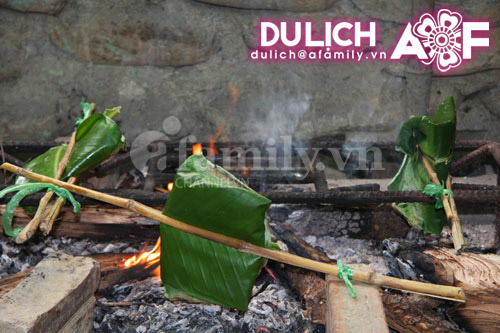 说到黑泰族的饮食,首先要提的是烧烤。无论是畜禽,还是水产,通通都能上火烤。黑泰人招待客人的宴席上肯定少不了烤鱼和烤肉。肉要切片,腌制,然后用竹签串起来或竹夹夹起来放在木炭上烤。还可以剁成肉馅儿,跟蛋搅匀,用香蕉叶或黄精叶包裹,再用竹夹夹住,放在木炭上烤或塞进热柴灰烘熟。烤好后芳香扑鼻,爽口不腻。烤肉也是黑泰族的传统佳肴,在春节和传统节日宴席上必不可少。奠边东县居民卢氏良告诉记者:“春节期间,烤肉绝不能少。因为过节决不能让家人饿着,所以要做烤肉。以前没有冰箱要事先做好,现在不同了,可以把肉放进冰箱里,现烤现吃。”