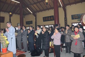 (VOVworld)- 法国维勒邦叙尔伊沃特市竹林寺1月31日即年初一为旅居法国和附近地区越南人举行祈安法会。