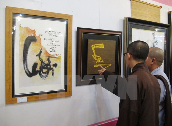 “劝学”书法展向公众介绍河内各个书法俱乐部的70幅作品。参展作品具有不同风格,不同纸质,记录前人在不同历史时期关于劝学主题的名言、训言、诗文等。