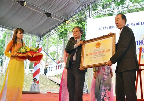 (VOVworld)- 越南政府总理关于将喔㕭-波栖(Oc Eo - Ba The) 艺术建筑及考古遗址列入国家特殊遗迹名录的决定发布仪式6月27日在安江省话山县喔㕭镇喔㕭-波栖遗迹区的南灵山寺举行。