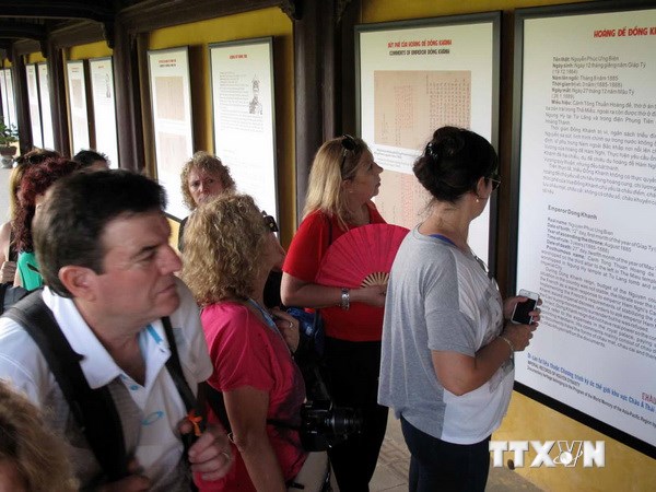| 游客参观阮朝朱批奏折资料展 |