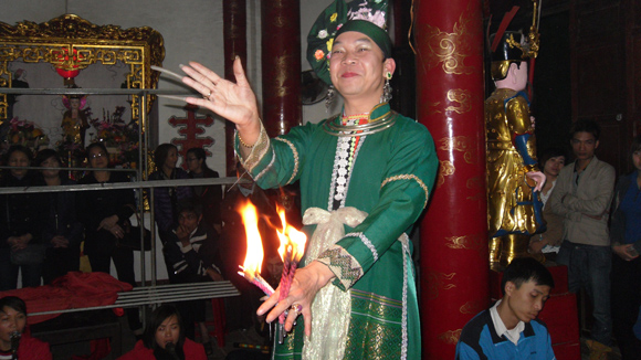 (VOVworld) - 圣母祭祀和候童礼仪(即跳神)是承载越南人传统虔灵文化价值的民间信仰活动。其中候童(又叫候影)是集音乐、歌唱、舞蹈于一身的综合演唱艺术形式。