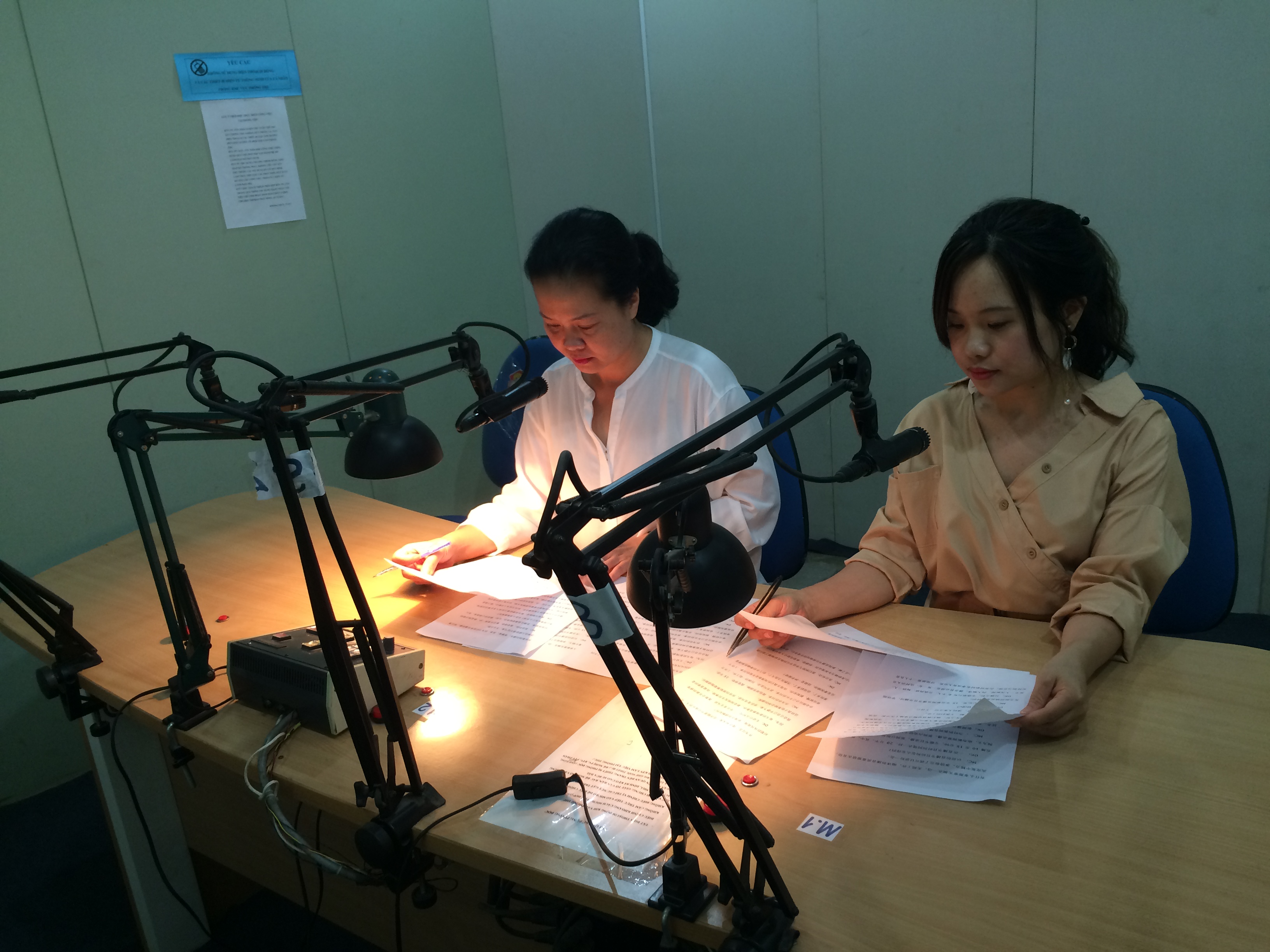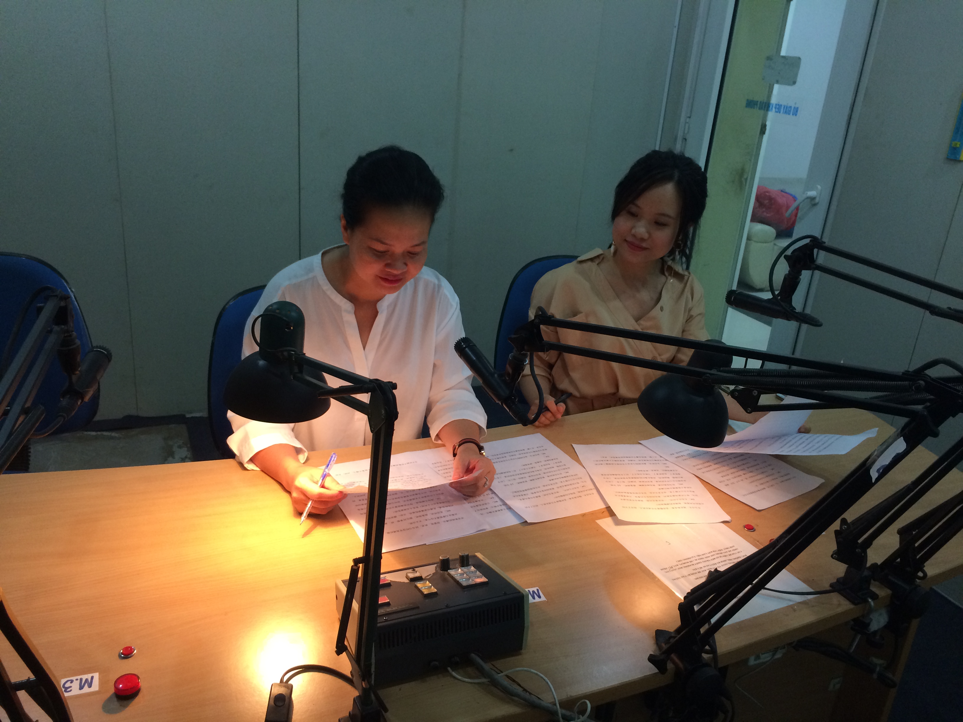 妙卿:我每天都练读。每次直播前要分好两人各自要读的新闻,确定什么时候要停下来插播音乐,如何与技术人员配合。稿子准备要很仔细,因为直播要尽量避免读错和卡顿。若出现卡顿就要向听众道歉并重新来。对于这一点,保持良好的心理状态非常重要,因为有时候过于紧张就可能读错。每次播完后都要总结,及时纠正。