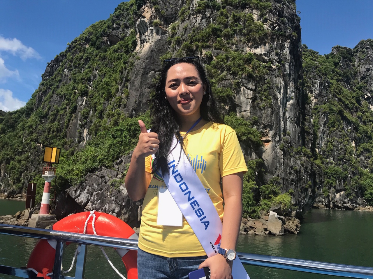 印度尼西亚年轻女歌手阿斯托·普吉那里(Asty Pujirari)表示:“大家好!这是我第一次来越南,参观下龙湾——一个非常美丽的世界自然遗产,我很高兴,也很感兴趣。我想向家乡的人民介绍下龙湾的独特与美好。这也是我第一次参加国际歌唱比赛,我希望能向东盟和世界各国的朋友介绍我国的文化特色。”