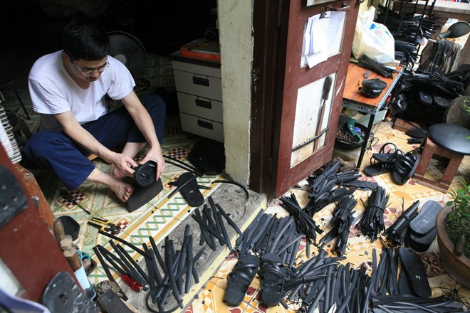 胶凉鞋也跟随着越南战士参加了两次长期抗战救国。原来只能在博物馆里看到的那些凉鞋,现在通过范光春艺人灵巧的手,又重新出现在人们眼前。