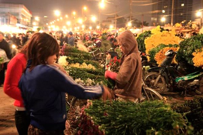 现在,来这里赶集成了不少人的乐趣。对他们来说,凌晨逛花市不仅仅是买花,也是享受河内夜生活。