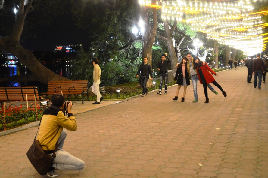 特别是,还剑湖边还是新人们拍婚纱照,留下爱情最美瞬间的地方。一个新郎在拍完婚纱照后兴奋地说:“这几天比较冷,但我们还是选在还剑湖拍婚纱照,因为,我认为,这里对越南人来说是个神圣的地方。第二个原因是这里的夜景十分浪漫,可以拍出好的照片。”